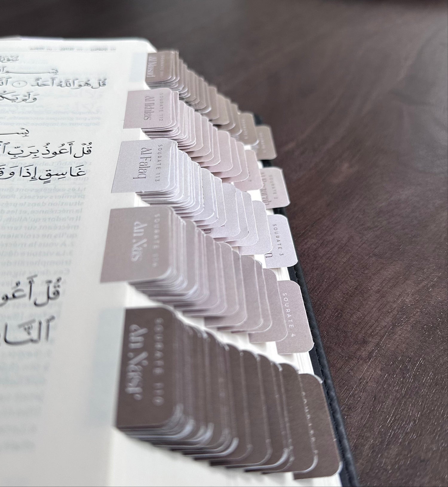 Commande-le dès maintenant et reçois ton Coran prêt à être lu, sans tracas ! Plus besoin de te soucier de la pose des onglets, il est déjà parfaitement préparé pour toi.