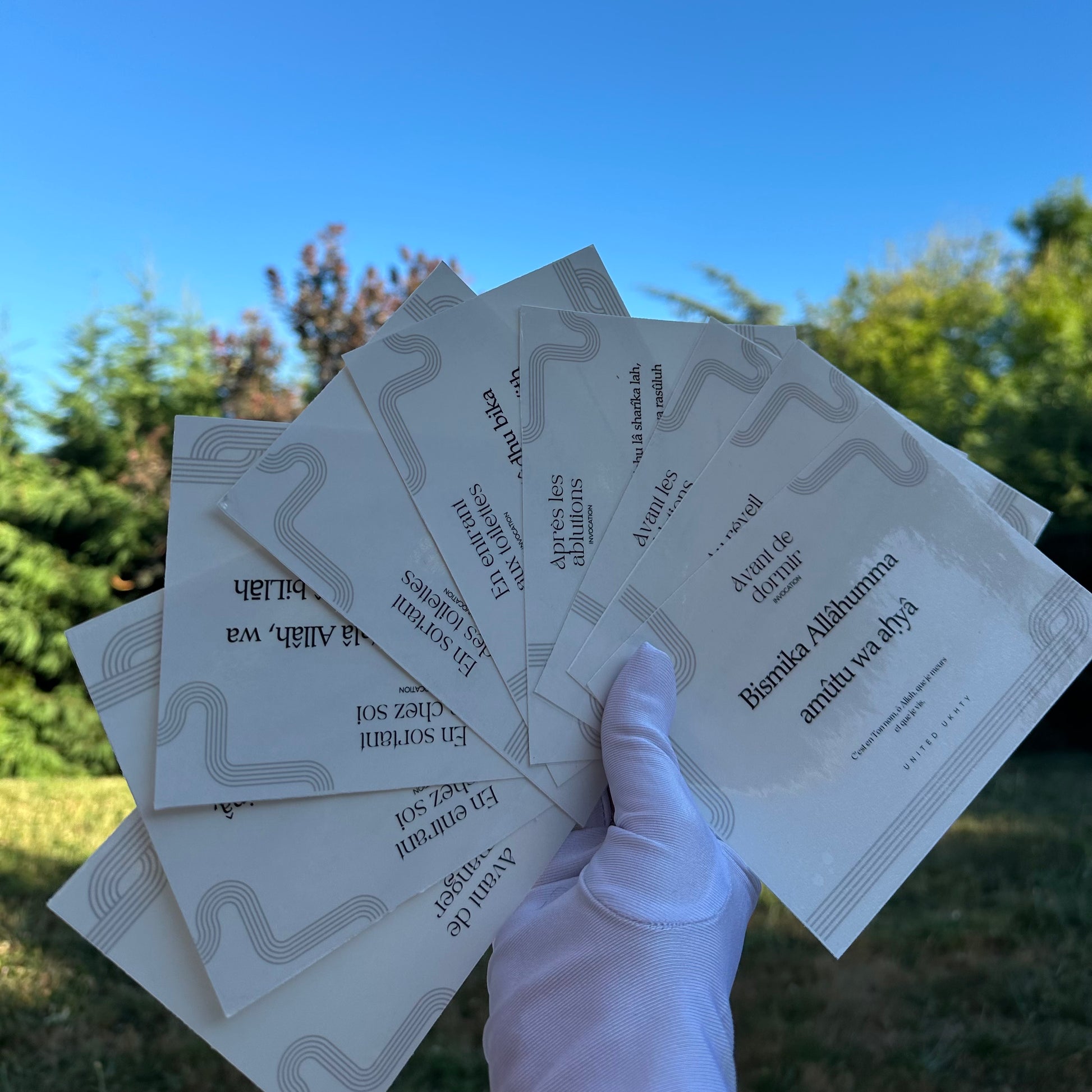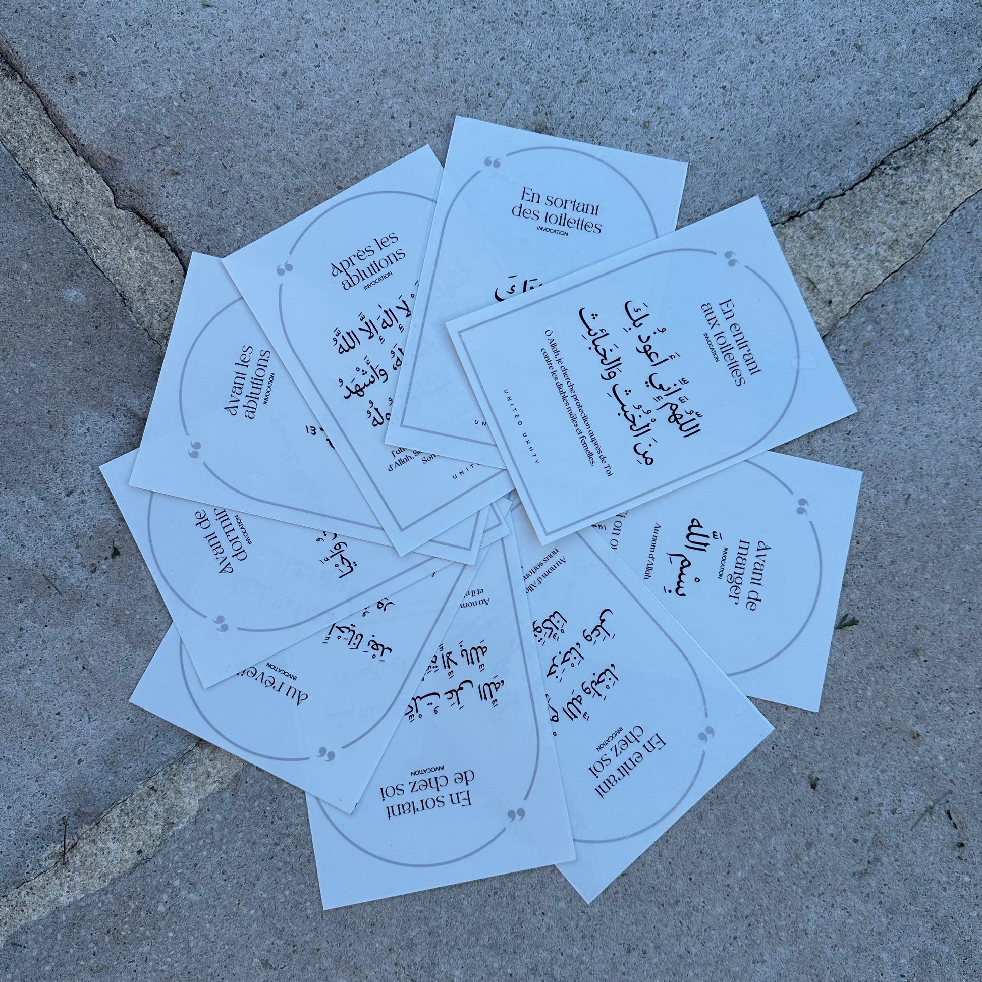 Ajoute une touche de spiritualité à ton quotidien avec ces stickers transparents élégants et inspirants. Chaque sticker contient une invocation (duʿā) authentique tirée de la tradition prophétique, pensée pour t’accompagner à chaque instant de la journée.