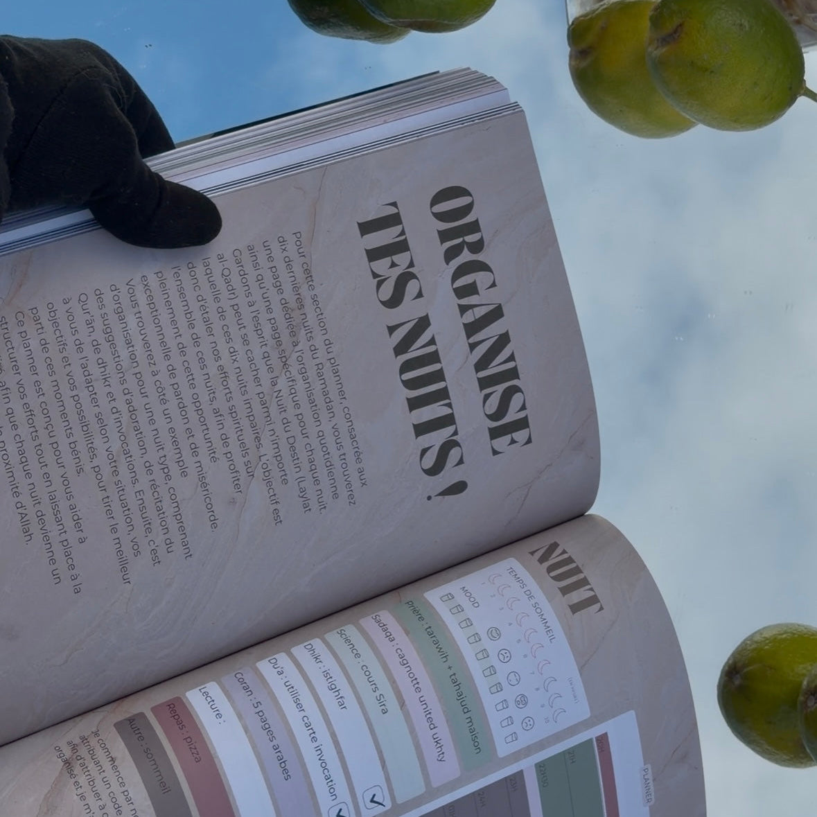 C’est l’outil idéal pour vivre un Ramadan organisé, apaisé et profondément spirituel. Avec plus de 300 pages dédiées à ton évolution spirituelle, tu y trouveras :